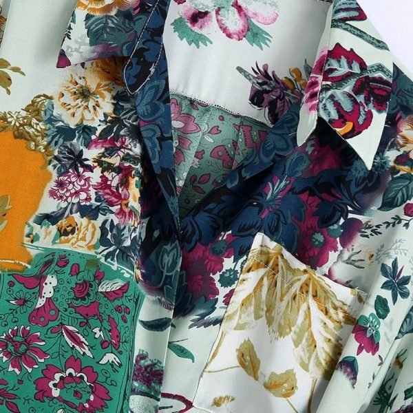 New Spring Women Elegant Floral Print Sashes Shirt Dress Female Long Sleeve...