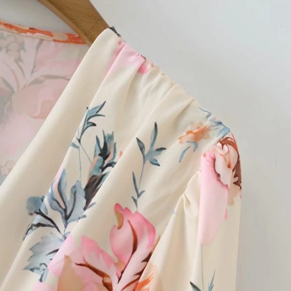 New Spring Women Elegant Floral Print Sashes Shirt Dress Female Long Sleeve...