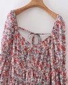 Summer Women Flower Print Deep V Neck Lace Up Bow Midi Dress Female Short...