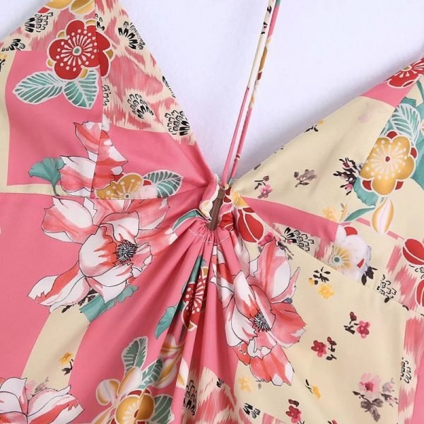 Summer Women Flower Print Deep V Neck Lace Up Bow Midi Dress Female Short...