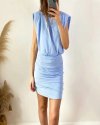 Cheap Dresses, Buy Quality Women's Clothing Directly from China Suppliers:Hot Sale Women Shoulder Pads Blue Pleated Mini Dress Female Sleeveless Clothes Casual Lady Slim Vestido D8130Enjoy ?Free Shipping Worldwide! ?Limited Time Sale ?Easy Return.