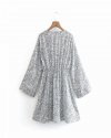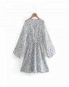 Hot Sale Women Geometric Print Knot Decoration Mini Dress Female Long Sleeve...