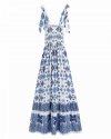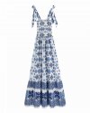 Summer Women Flower Print Deep V Neck Lace Up Bow Midi Dress Female Short...