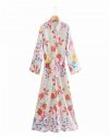 New Spring Women Elegant Floral Print Sashes Shirt Dress Female Long Sleeve...