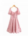 Summer Women Flower Print Deep V Neck Lace Up Bow Midi Dress Female Short...