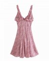 Summer Women Flower Print Deep V Neck Lace Up Bow Midi Dress Female Short...