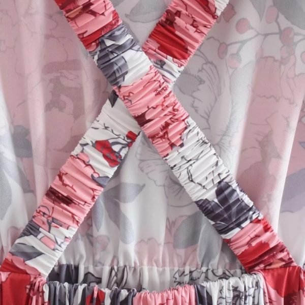 Summer Women Flower Print Deep V Neck Lace Up Bow Midi Dress Female Short...