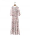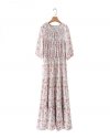 New Spring Women Elegant Floral Print Sashes Shirt Dress Female Long Sleeve...