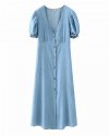 Cheap Dresses, Buy Quality Women's Clothing Directly from China Suppliers:Summer Women V Neck Single Breasted Side Slit Denim Midi Dress Female Puff Sleeve Clothes Leisure Lady Loose Vestido D7996Enjoy ?Free Shipping Worldwide! ?Limited Time Sale ?Easy Return.